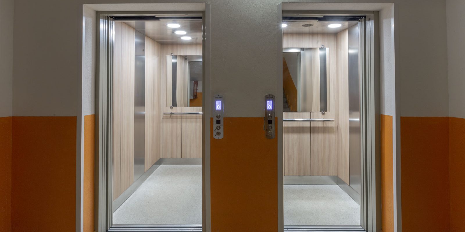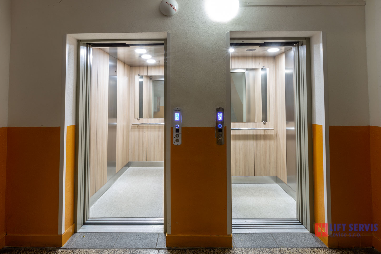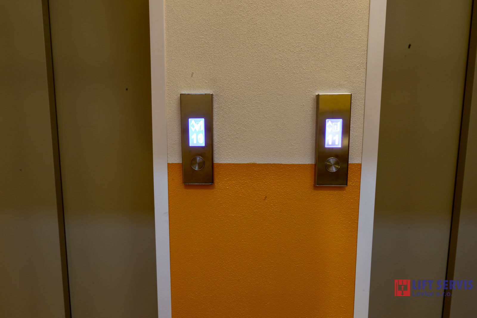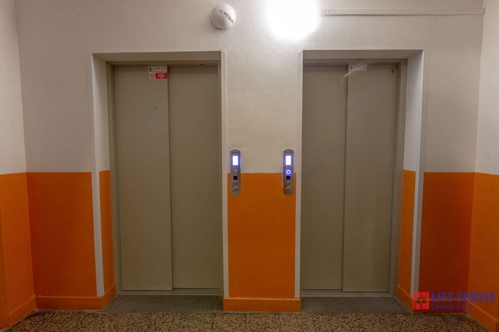 Jedná sa o kompletnú výmenu výťahov v bytovom dome Perecká 1 Levice. Pôvodný osobný výťah typ TOV 320 kg bol nahradený novým typom TOV 450 kg a nákladný výťah TONV 500 kg bol nahradený novým typom TOV 1000 kg. Výťahy sú zapojené v režime blokovania súbežných jázd, t.j. z jednej nástupnej stanice sa nedajú privolať súčasne obidva výťahy.