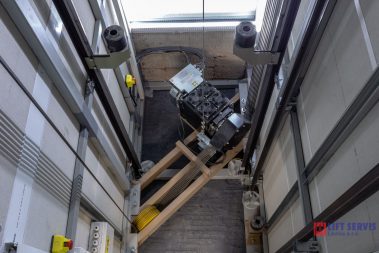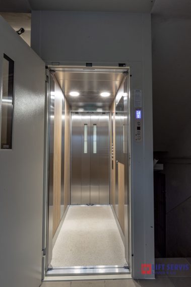 Jedná sa o kompletnú demontáž pôvodných výťahov vrátane výťahových šácht. Pôvodné osobné výťahy typ BOV 250 kg boli nahradené novým typom TOV 600 kg s priechodnou kabínou, vrátane nových oceľových konštrukcii opláštených systémovými doskami FARMACELL.