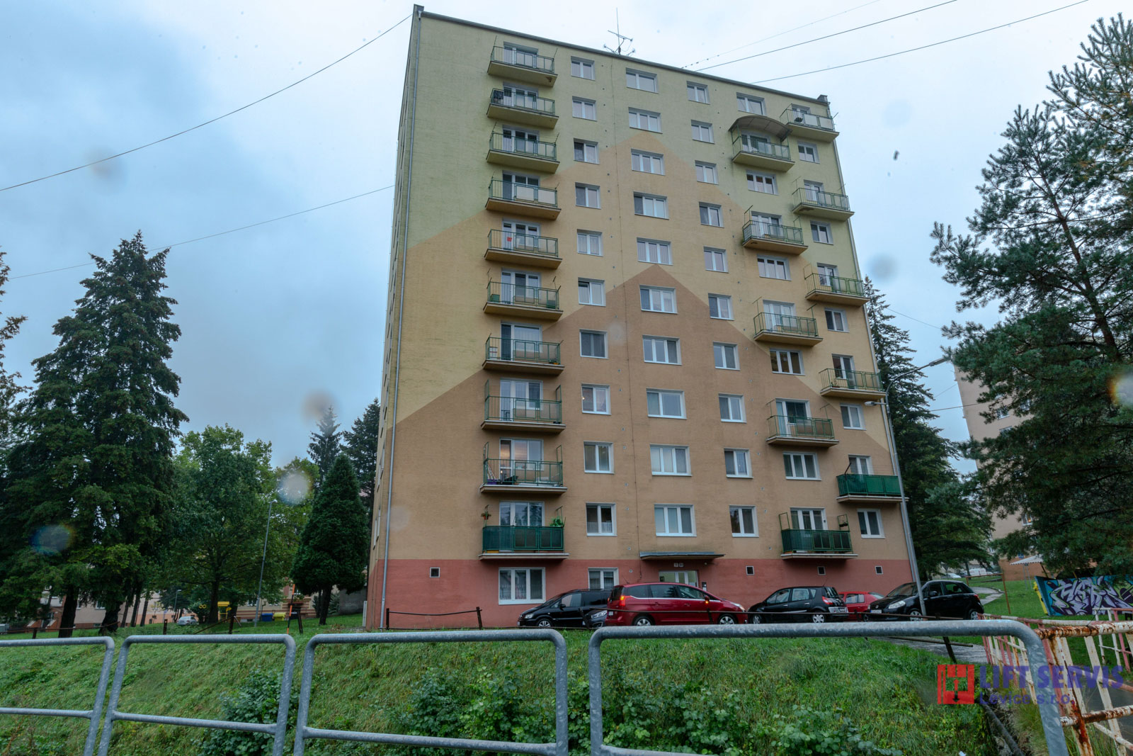 Jedná sa o kompletnú výmenu pôvodného výťahu, vrátane opláštenia šachty v bytovom dome Partizánska 8 Handlová. Pôvodný osobný výťah typ TOV 250 kg bol nahradený novým typom TOV 450 kg.